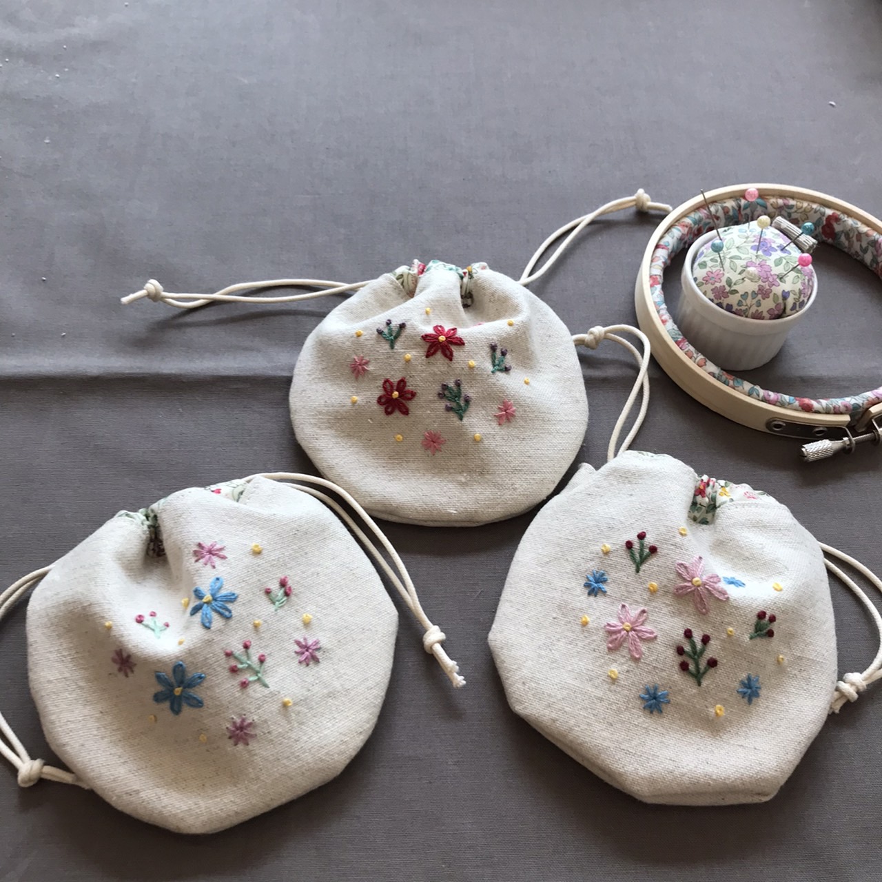 可愛いまんまる巾着を作っておられましたよ。