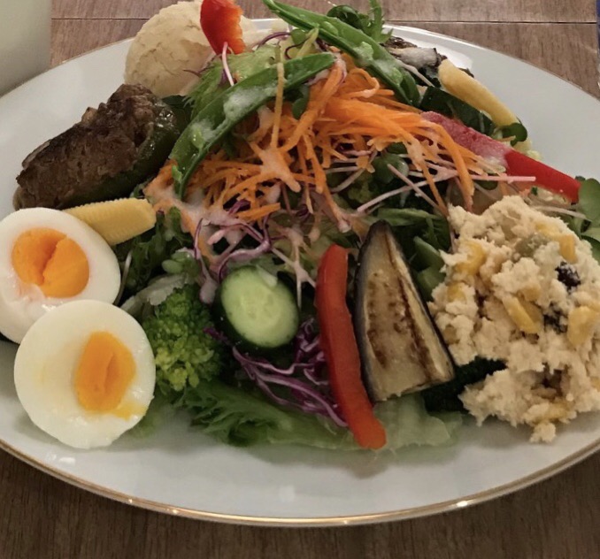 卵スープ付きです。ランチにはプチドリンク(コーヒーor紅茶)または、プチドリンク(コーヒーor紅茶)&おやつ(牛乳寒天もしくは米粉のシフォンケーキまたは焼き菓子2個)を付けることができます。