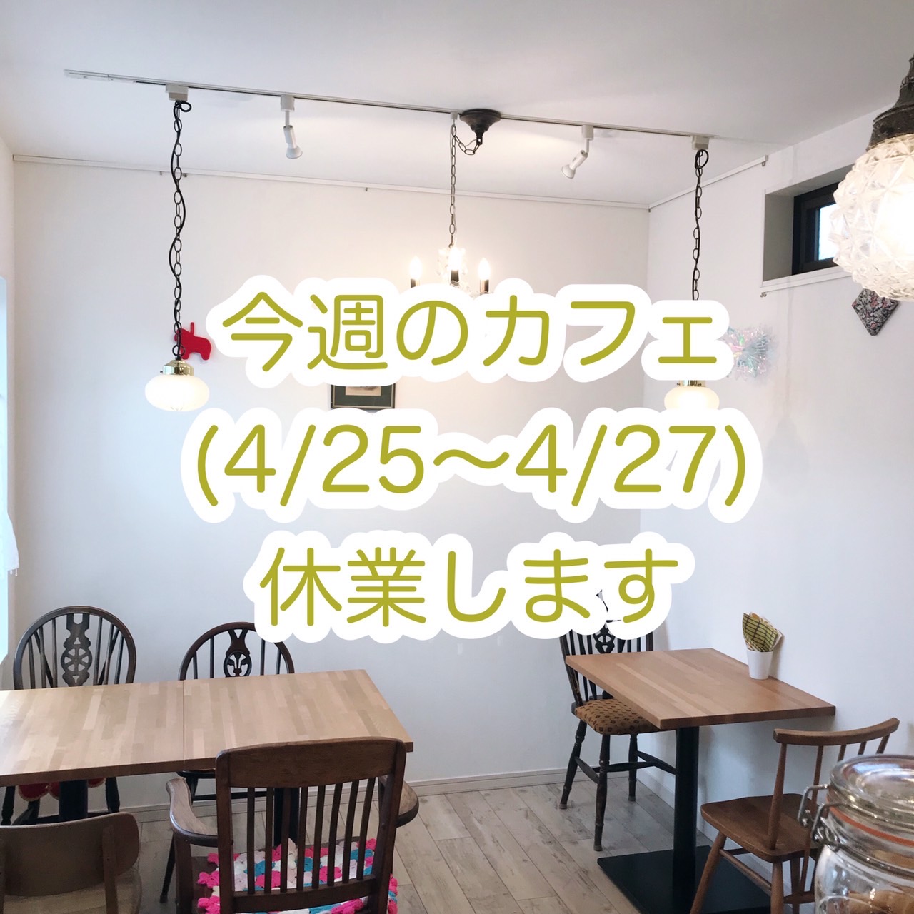 今週のカフェ休業します(4/25〜4/27)