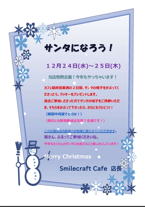続きまして当店のクリスマス時期の恒例のお知らせです!